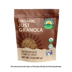 Tierra Farm can trace its nut-roasting roots to our early days of baking granola. While the recipe has evolved over the years, we never gave up on using simple, healthy ingredients which are always at peak freshness. Our entire line of granolas is certified gluten-free and organic, and we use maple syrup to give the toasted oats a perfect balance of sweetness. Just Granola is chock full of flax that is rich with omega-3, plus chia, sesame seeds, and coconut. We keep this granola plain so you can add in the additions you want, or eat it as-is for a deliciously crunchy and satisfying snack.
