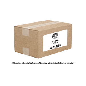 Organic Raw Cacao Nibs are chocolate in its most basic form: dried fermented bits of the cacao bean. They have a deep chocolatey taste, though not as sweet as chocolate, which makes them a great addition to any baker’s recipe. There are many uses for organic Cacao Nibs, add to trail mixes and smoothies or snack right out of the bag! The health benefits are even better than organic dark chocolate. Raw Cacao has no sugar, is one of the best dietary sources of magnesium, and a good source of iron, dietary fiber, and antioxidants. Raw Cacao Nibs can be an acquired taste, but we are sure once you try them you’ll be hooked on their versatility and healthy addition to your diet.