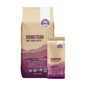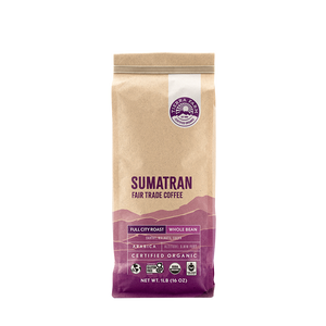 This organic, single-origin, shade-grown, fair-trade Sumatran Coffee is given a full-city roast (coffee roasted between first and second cracks, characterized by its medium-dark color) to create a smooth flavor with hints of dark chocolate. This delightful coffee is a favorite around the world, from start to smooth finish.