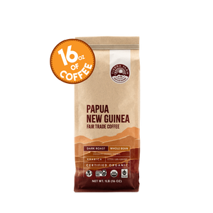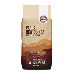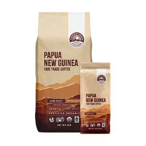 Our on-staff, licensed Q-Grader loudly exclaims after every sip, “I love this coffee!” He should because he developed the roast. This coffee is dominated by the smooth velvety body, low acidity, spicy undertones, and hints of delicious dark chocolate. Fair-trade coffee farming in Papua New Guinea is one of the largest sources of agricultural revenue in the country. All of the coffee we source is from small family farms grown at a minimum elevation of 4,000 feet. This coffee is hands down the best coffee we make, and it is a must-have for anyone who loves a full-flavored, dark-roast coffee.