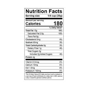 Dry Roasted Fair Trade Organic Cashews, Organic Honey, Organic Garlic Powder, Organic Cajun Powder (Organic Cayenne, Organic Chili Powder), Sea Salt.