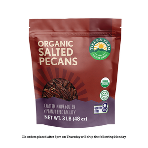 The rich, buttery flavor of pecans makes them quite suitable for the addition of the savory taste of our premium-quality sea salt. Without using any oils, Tierra Farm dry roasts every pecan in small handcrafted batches for your taste buds’ enjoyment. Using the best mammoth and extra-large organic pecans, we find this mouthwatering snack will keep you coming back for more and more.