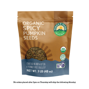 Dry Roasted Organic Pumpkin Seeds, Organic Cajun Powder (Organic Cayenne Powder, Organic Chili Powder, Organic Habanero Powder), Sea Salt.