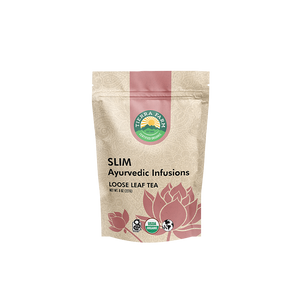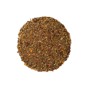 Ingredients: Organic tulsi leaf, organic rooibos herb, organic gymnema sylvestre leaf, organic cinnamon bark, organic turmeric root, organic haritaki herb and organic hibiscus flower.