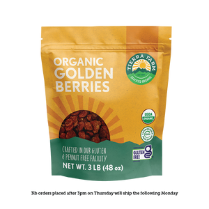 Organic Dried Golden Berries are not for the weary. Super tart up front, these Golden Berries finish on a sweet note that leaves you coming back for more. The unique berry flavor makes for a popular ingredient in baked goods and salads, as well as a delicious snack that is a pop of excitement all on its own.