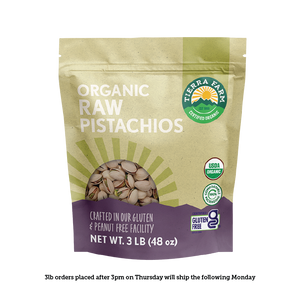 Loved by adults and children alike, Organic Pistachios are a versatile nut that is sure to please. Tierra Farm sources raw, Organic Pistachios in the shell, and raw, shelled Organic Pistachios (meats) from some of the best organic pistachio farms on the West Coast. Enliven any dish or try roasting them yourself. Pistachios are a good source of protein, fiber and heart-healthy fats.