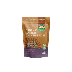 Just like our superior Salted Cashews, these organic Salted Cashew Pieces are the highest quality in taste and freshness. Dry roasted to perfection and lightly coated in pure sea salt, our Salted Cashew Pieces are a great addition to a healthy diet, providing protein, fiber, and good-for-you fats. Crunchy, creamy, salty, and savory, these Cashew Pieces are perfect to keep on hand when cooking, baking, or entertaining!