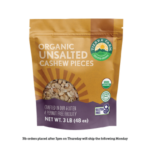 Our organic, dry-roasted, Unsalted Cashew Pieces are an excellent addition to your favorite recipes. Toss them over stir fry or salads for a nutritious crunch, blend them in your morning smoothies for added protein and fiber, or add them to your baking arsenal. If you’re a do-it-yourselfer, these halved cashews are the perfect ingredient for grinding your own cashew butter. They’re always fresh, always organic.